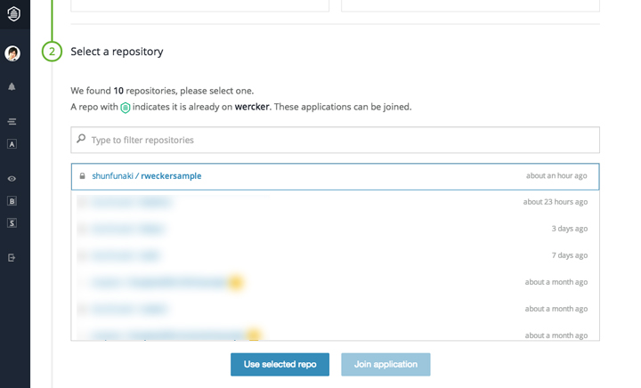 STEP2 Select a repository : 先ほどGitHubにpushしたリポジトリ(今回はrwerckersample)を選択