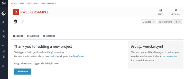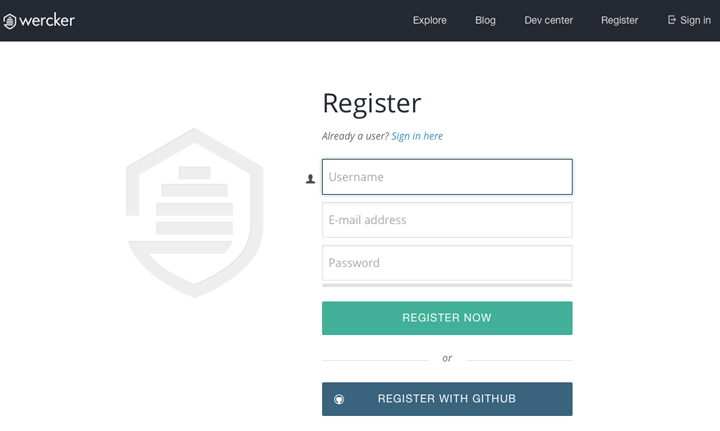 CIサービスWerckerを使えるようにしておきます。Werckerの新規登録はこちらからできます。