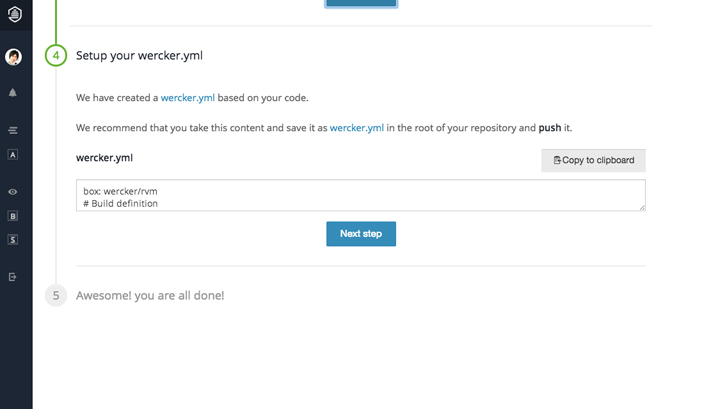 $ git add . $ git commit -m 'add wercker.yml' $ git push -u origin master