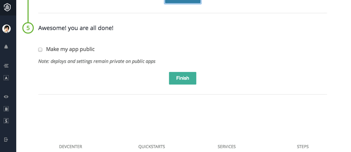 STEP3 Configure access : Werckerがリポジトリからソースコードを取得するためのアクセス方法を設定します。デフォルトのデプロイキー追加方法でいいでしょう。